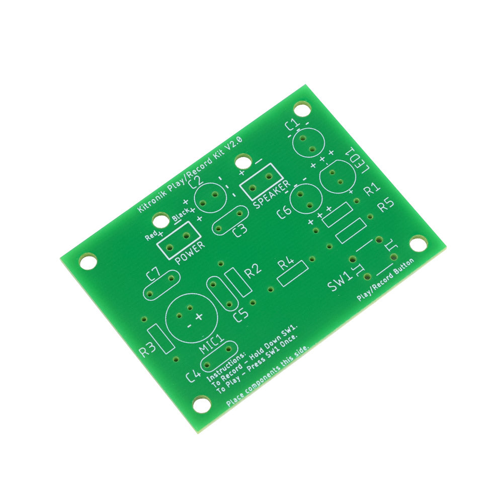 The Kitronik 30 Second Record Playback Kit V2.0 is an easy-to-build audio recording and playback kit designed for classroom electronics projects and home STEM/STEAM activities. This updated version increases the recording time to 30 seconds (up from 10 seconds in V1), introduces a smaller PCB, and includes several improvements that make the kit simpler to assemble and more robust for student use. Whether you’re teaching basic circuits, creating interactive models, or adding sound to props, this kit provides a reliable single-button way to record and play back audio.